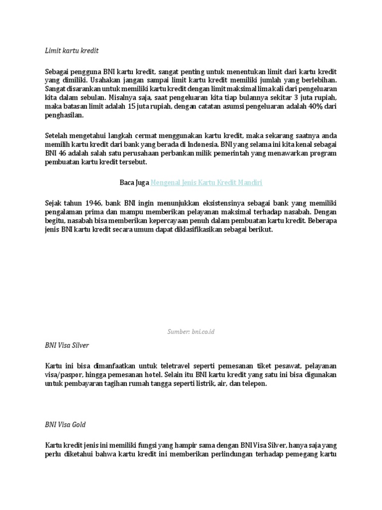 Kartu Kredit Lainnya Bni