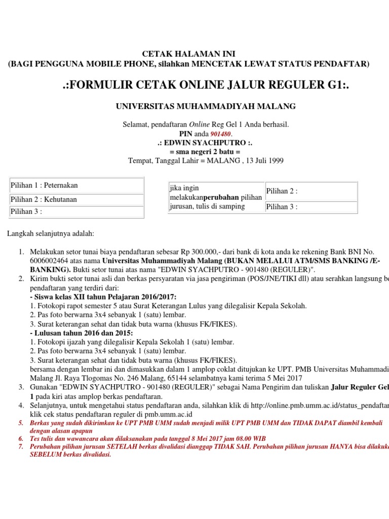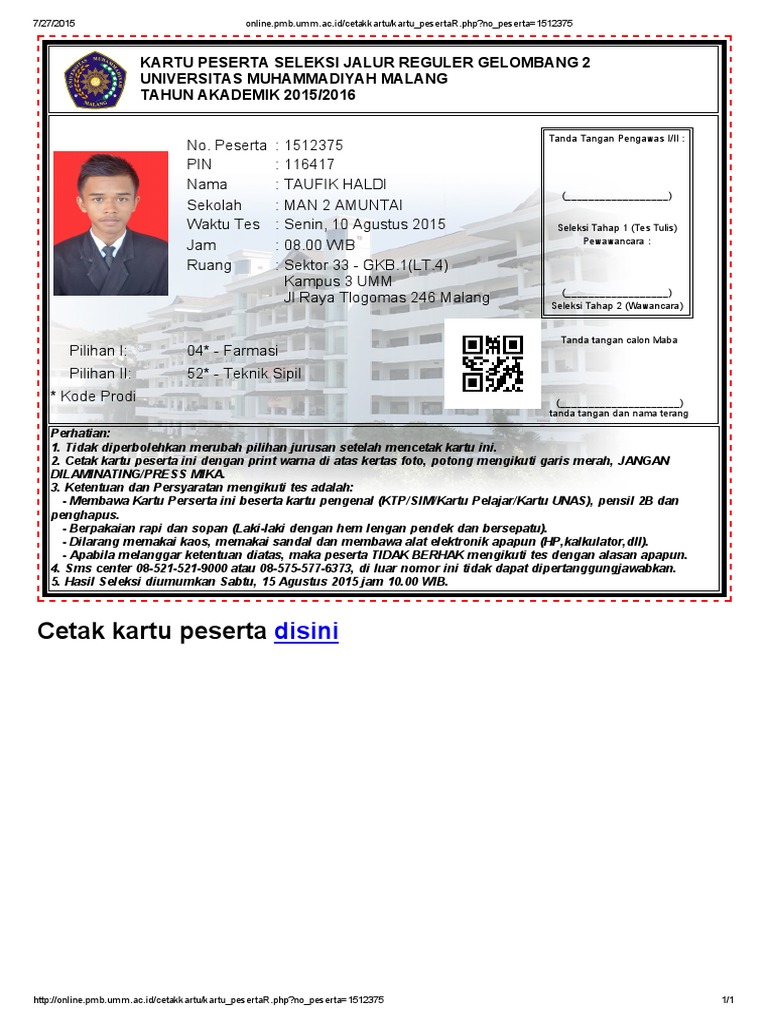 Informasi mengenai Online Pmb Umm Ac Id Cetak Kartu.